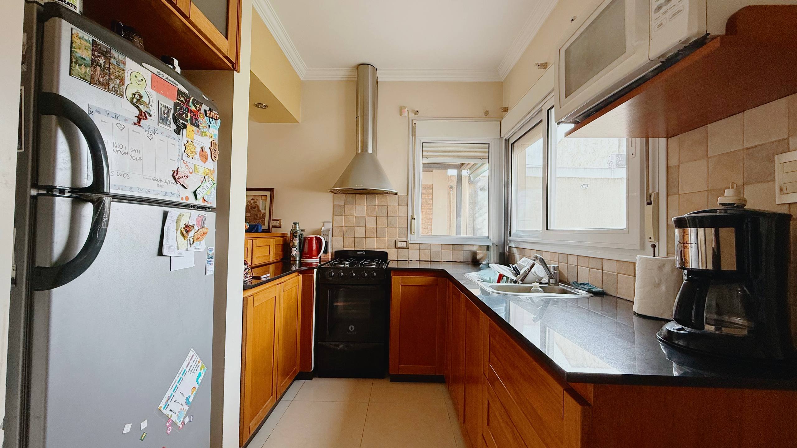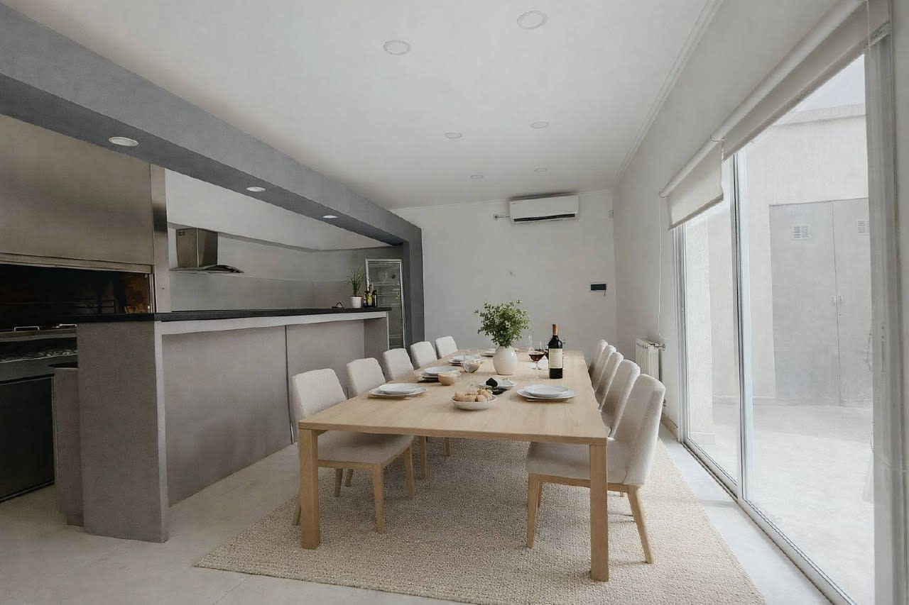 Living comedor al frente con cocina semi integrada , lavadero separada de la cocina con buen lugar de guardado , cuatro dormitorios con placard ( uno tipo escritorio en planta alta con salida a una terraza propia ) , tres baños completos , quincho moderno con muy buen amoblamiento , patio verde y espacio semicubierto para 2 autos .